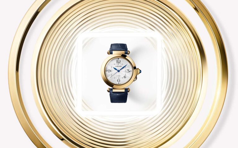 Roman numerals are guided on their path by a deep blue winding mechanism. With the convex curves of the case, guilloché dial, sword-shaped hands, and polished or satin-finish links of the bracelet…the Ballon Bleu watch by Cartier floats through the world of Cartier watchmaking.