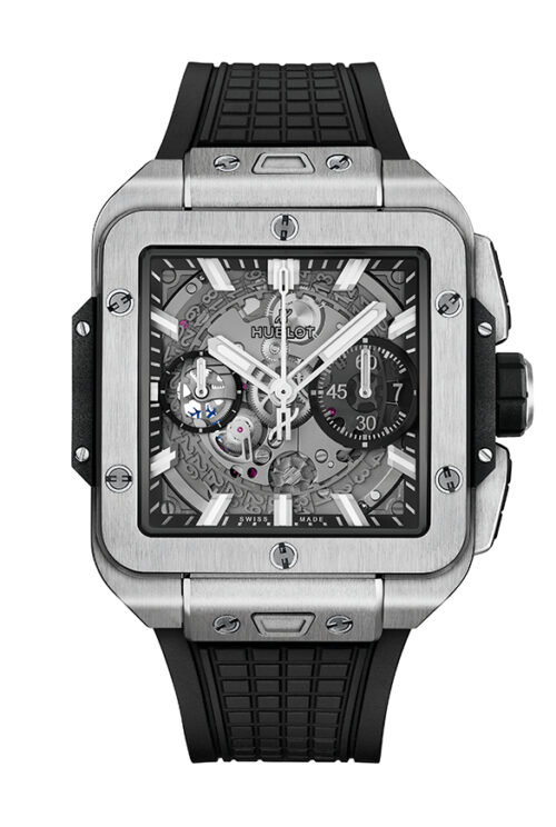 The HUB4700 caliber is the successor to the famous El Primero caliber – the first chronograph with an integrated style automatic winding (1969), which was also the first mechanical chronograph equipped with a 5 Hz frequency (36’000 alt/h) allowing an accuracy of 1/10th of a second. In a perfect fusion between tradition and innovation, this entirely skeletonized movement is now equipped with silicon regulating element ensuring avant-garde performances, precision and reliability.