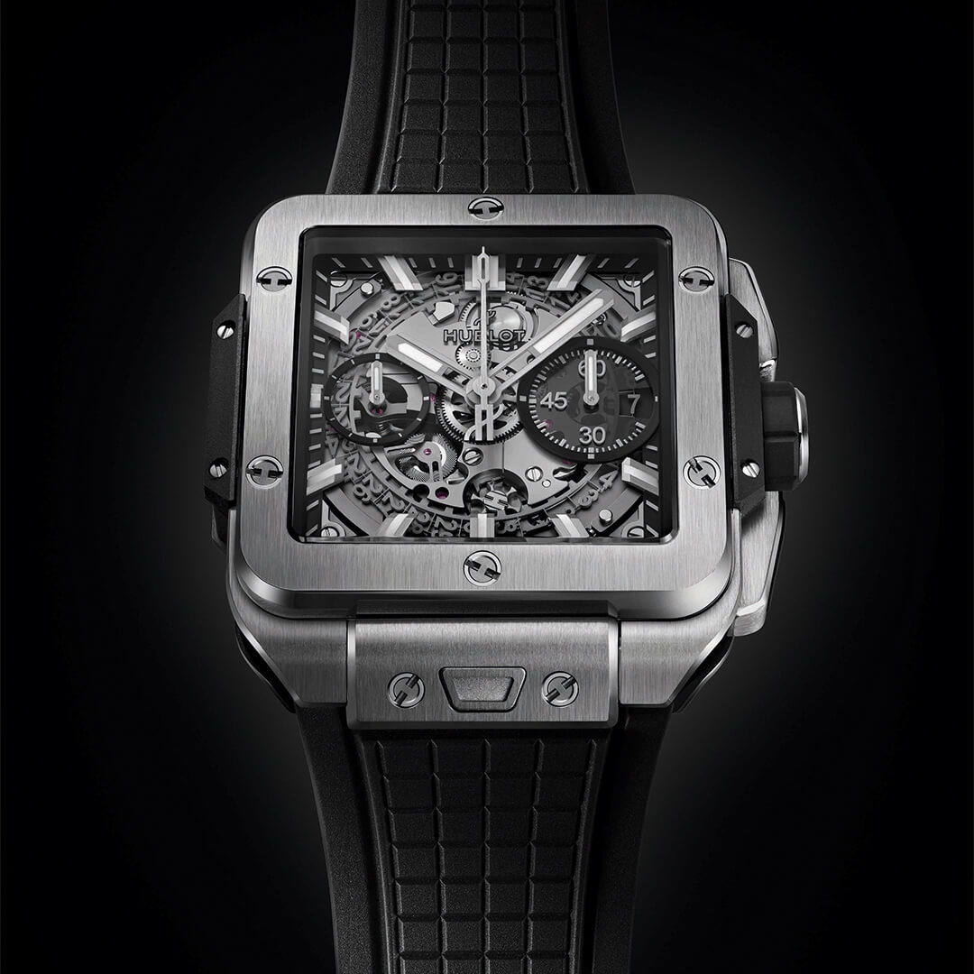 Titanium is extensively used by Hublot, specifically for its lightness. It displays the best relationship between resistance and weight of any material, which makes it an extremely popular material especially within aeronautics. It also stands out with its resistance to corrosion and its inertia in contact with the skin. Hublot only uses high quality, grade 5 titanium, the strongest there is. Once polished, this material retains a slightly bluish metallic sheen.