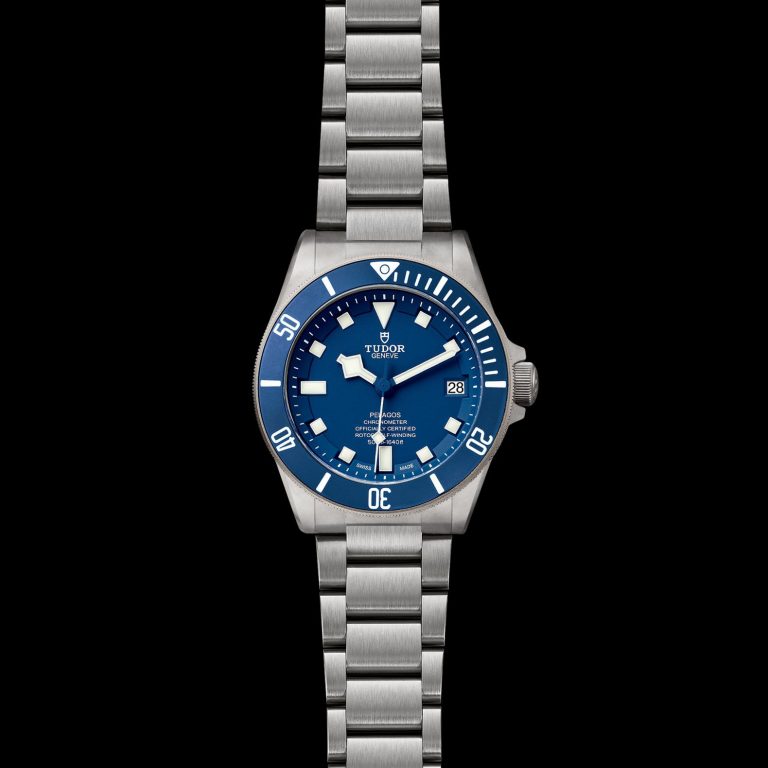 The Pelagos stands out with its titanium bracelet featuring a steel folding clasp with a unique auto-adjustable spring mechanism developed and patented by TUDOR. This technical system allows the bracelet to be adjusted during the dive, contracting when the combination is compressed at greater depths, and expanding when the pressure decreases again during the diver’s return to the surface. An additional rubber strap is also provided, equipped with an extension system that makes it easily adjustable for all diving conditions.